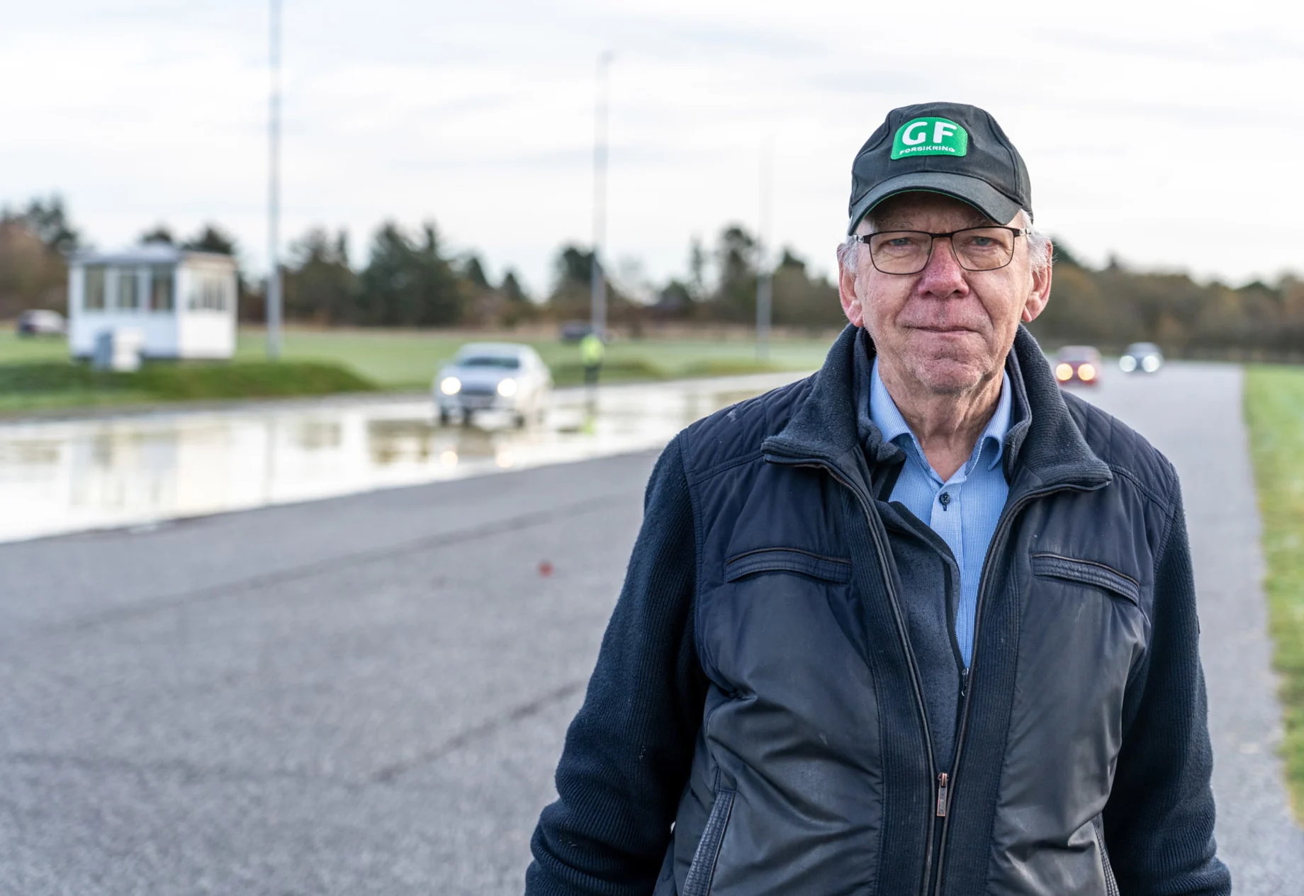 For GF Skive, Thy og Mors er trafiksikkerhed ensbetydende med at tage hånd om GF Forsikrings medlemmer i klubben og samtidig forebygge skader på de forsikrede biler. Klubbens formand, Svend Åge Pedersen, forklarede tydeligt, hvorfor GF Forsikring afholder denne type kurser, da vi spurgte ham om baggrunden. Han stod for indskrivningen, når deltagerne ankom og skulle ind til rundstykker og kaffe, inden glatførekurset gik i gang.